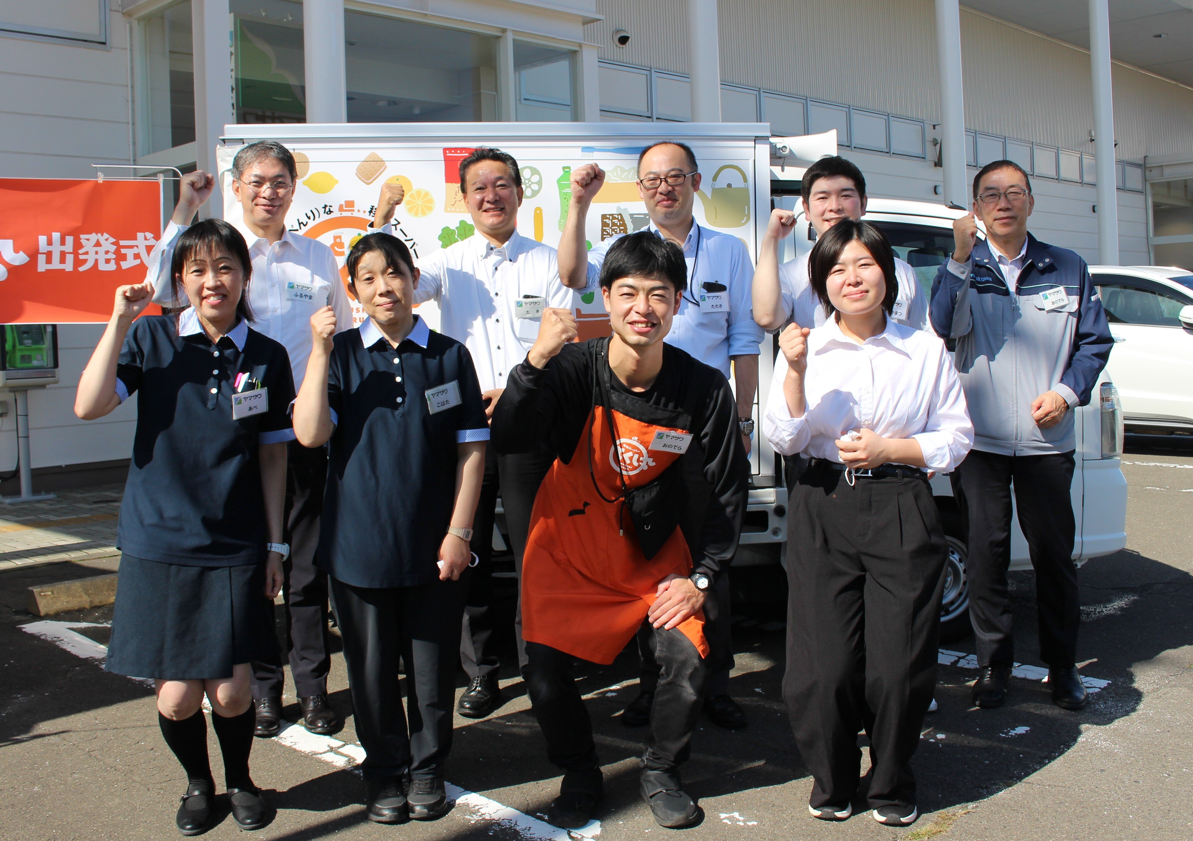 2025年10月2日(木)、昨日の大雨が嘘のように晴れ渡った青空の下、宮城県仙台市にあるヤマザワ田子店を拠点とする、移動スーパー「とくし丸」33号車の出発式を行いました。