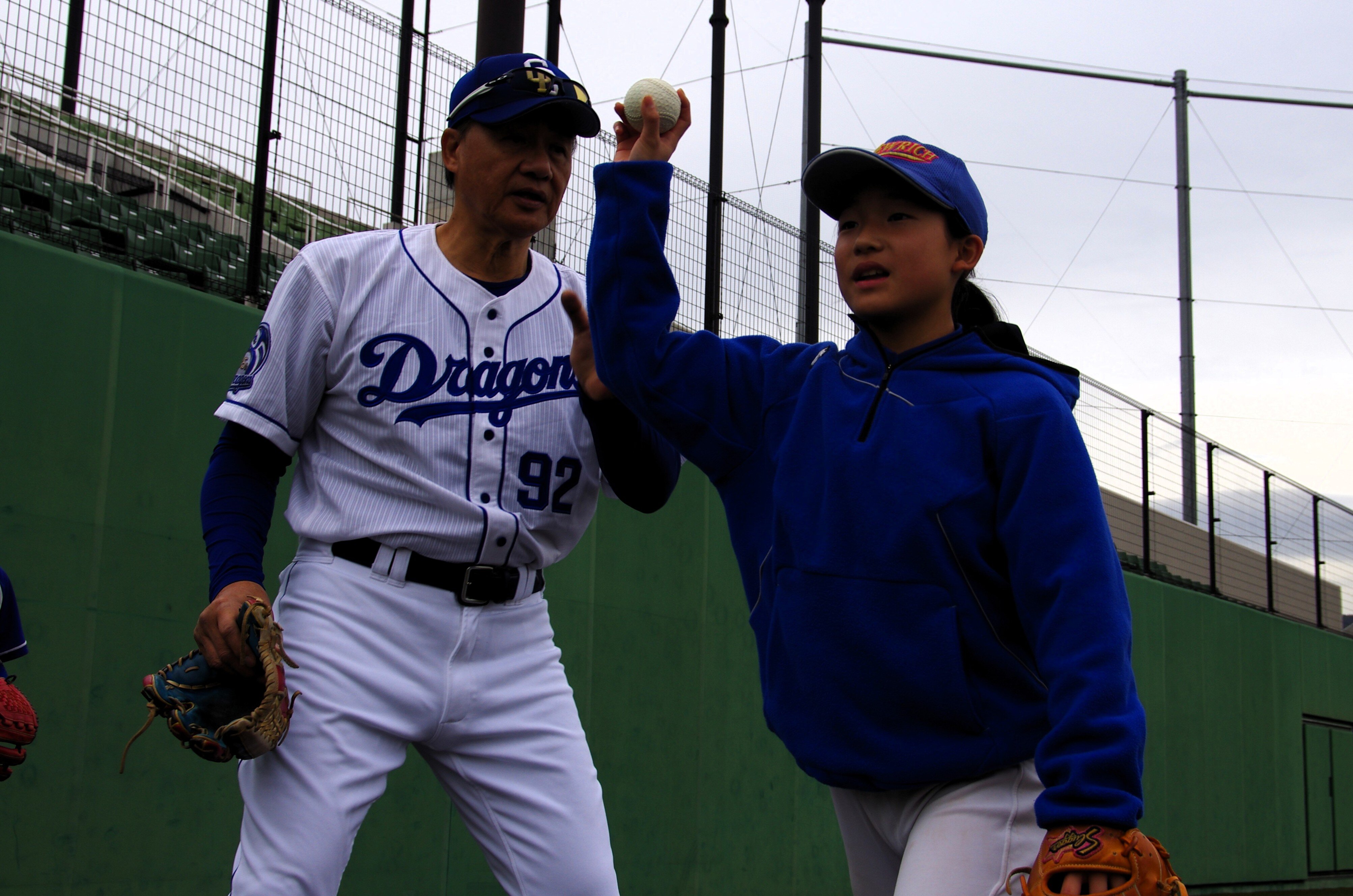 現役時代は剛速球を投げまくっていた与田さん、ピッチャーの子どもたちへの指導は特に熱が入ります。