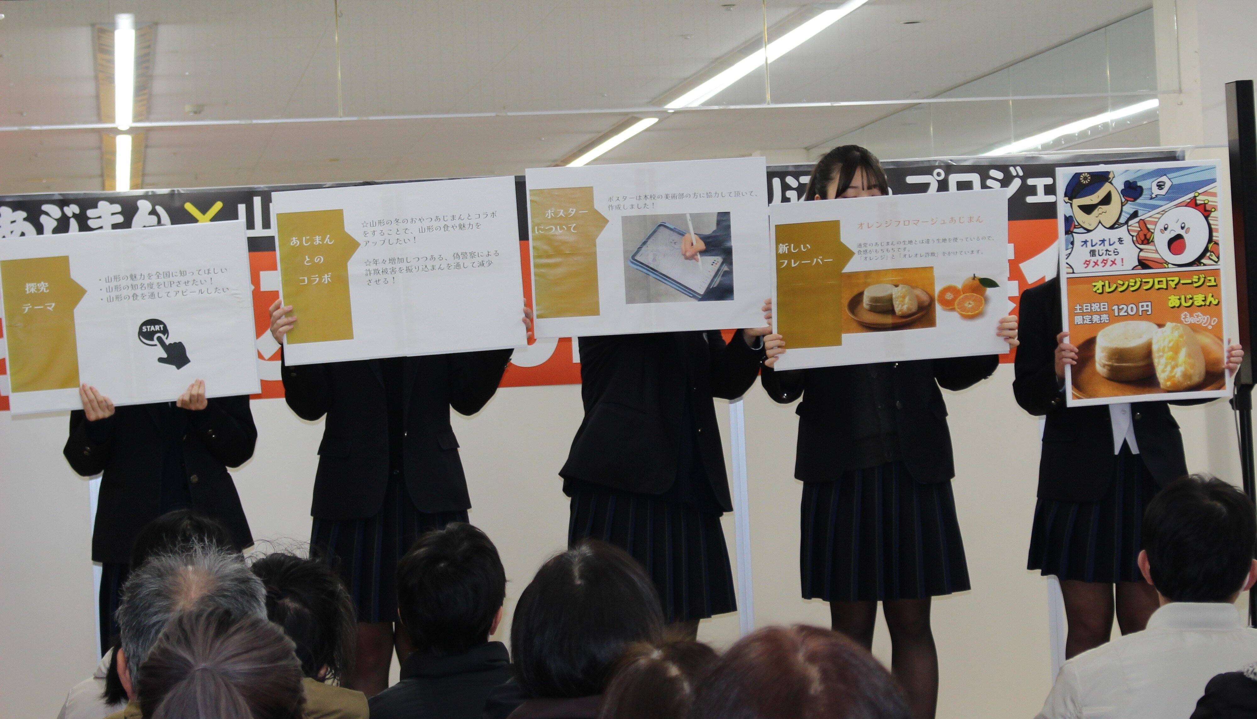 あじまん×山形県警察×惺山高校 振り込まん制作発表会in ヤマザワ北町店